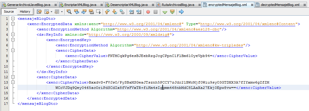 - EncriptarXMLBlog: Clase que crea el archivo XML cifrado.