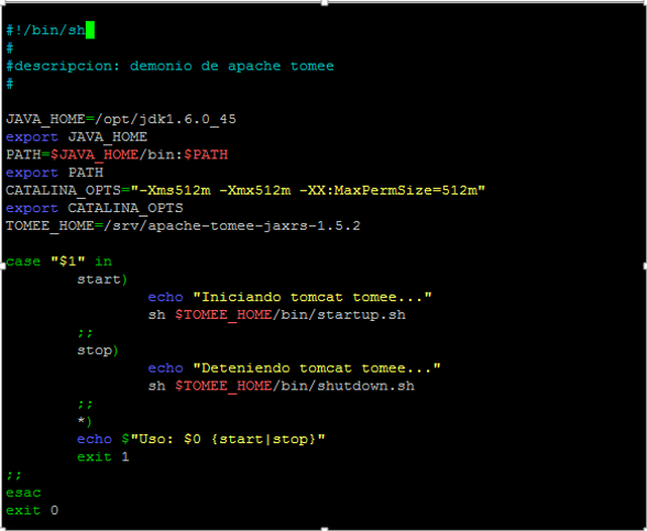 El servicio que necesite montar en Linux fue APACHE TOMEE, y con base en documentación de algunas páginas, realicé esta serie de pasos teniendo en cuenta que los archivos de mi Apache Tomee están en la siguiente ruta: